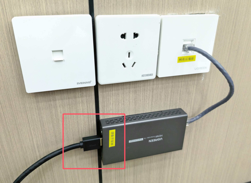A. 连接会议室后方高清视频线,注意左边接口才是输入接口。