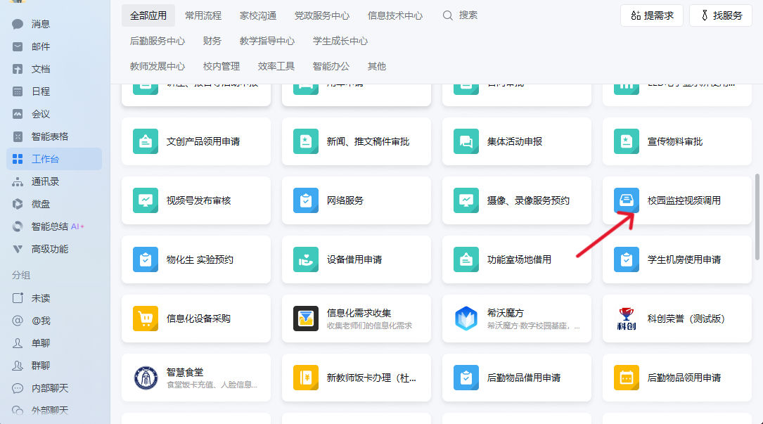3.1 进入企业微信→工作台→监控调用申请入口、