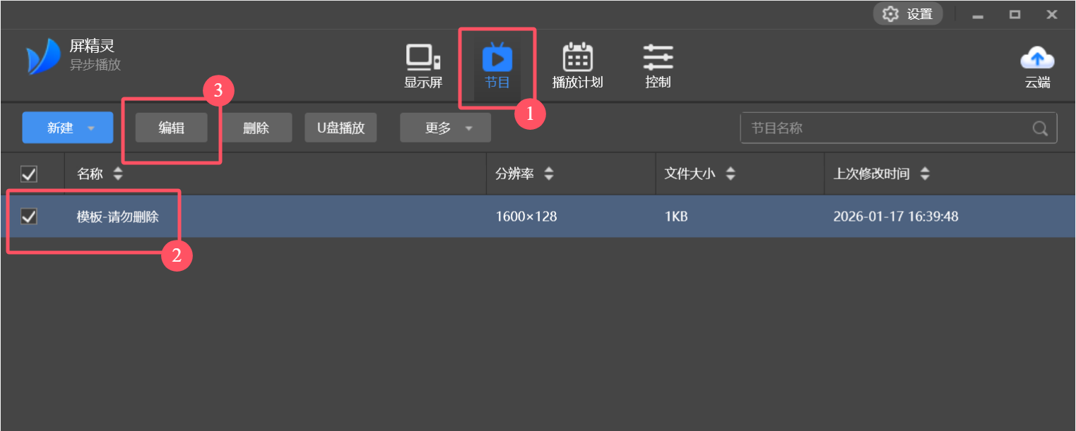 2. 在软件界面依次选择【节目】-勾选节目-点击【编辑】。