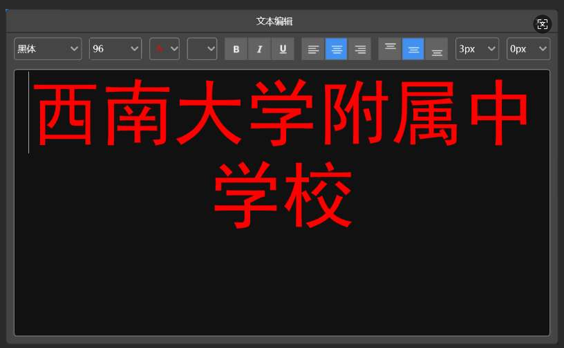 3. 双击文本框,弹出文本编辑菜单,更改活动主题会标文字,更改文字后关闭编辑菜单。